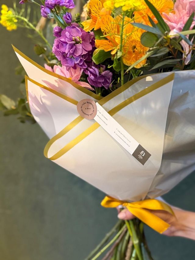 A todos nuestros ramos los acompaña un packaging sustentable: